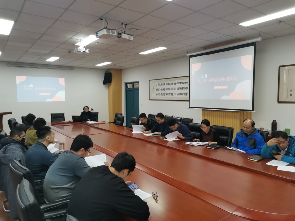 为进一步加强2021级学风建设,及时总结年级员工在专业学习方面的现状和问题,推进下半学期学风建设工作,11月18日上午,2021级在工科A121召开班主任、辅导员期中座谈会,会议由辅导员窦雅琴主持,2021级全体班主任参加。