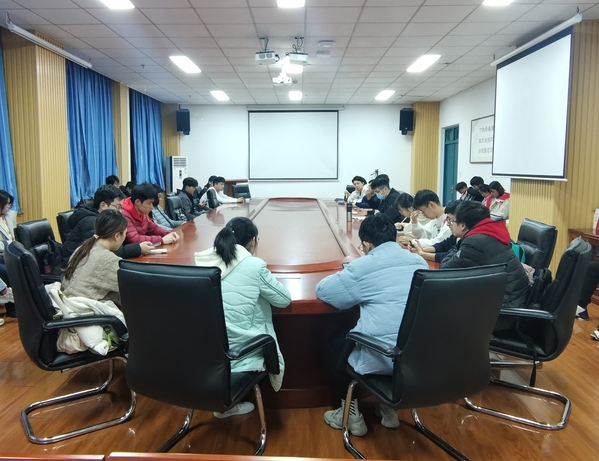 为强化疫情防控,加强2019级学风建设及员工日常安全管理工作,11月25日下午,2019级于工科楼A座121召开班长团支书例会,辅导员王兆兴、耿旭超主持会议,2019级全体班长、团支书参加此次会议。