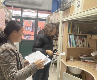 为了解学院少数民族员工的生活、学习情况,加强2020级员工宿舍卫生、安全管理,营造良好的宿舍氛围,11月26日下午,内派老师热阳和2020级辅导员栾琳古开展了宿舍卫生、安全检查工作,对2020级宿舍及全院少数民族员工宿舍进行了全覆盖检查。本次卫生检查中发现,男生部分宿舍存在东西杂乱、空气质量差等问题,需进一步整改;女生宿舍卫生状况情况较好,个别宿舍存在桌面东西多、床上悬挂衣物、使用床帘等问题。本次检查未发现使用、存放违章电器等现象,但个别宿舍仍存在人走未断电的现象。针对检查过程中发现的问题,栾琳第一时间对相关人员进行了批评教育,同时要求宿舍长加强监督。检查过程中,栾琳还询问员工考试复习情况,鼓励同学们抓紧时间认真备考,同时告诫同学诚信考试。热阳古与少数民族员工热情交流,询问员工生活和学习方面有无困难,鼓励同学积极参与班级和学院安排的各项集体活动,展现自我、全面发展。