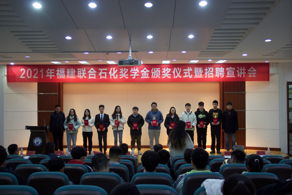 福建联合石化奖学金由福建联合石化有限公司出资设立,旨在鼓励热爱祖国石化事业,对石油化工领域的专业学习、科学研究卓有兴趣的学子以及在各类竞赛取得优异成绩的团队,每年将有10名员工获得个人奖学金、1支团队获得团队奖学金。本次颁奖仪式有利于激发员工向获奖个人、团队学习的热情,营造良好的学习氛围,同时也让广大同学了解福建联合石化有限公司,为日后就业工作奠定了基础。