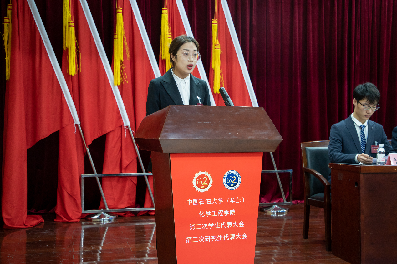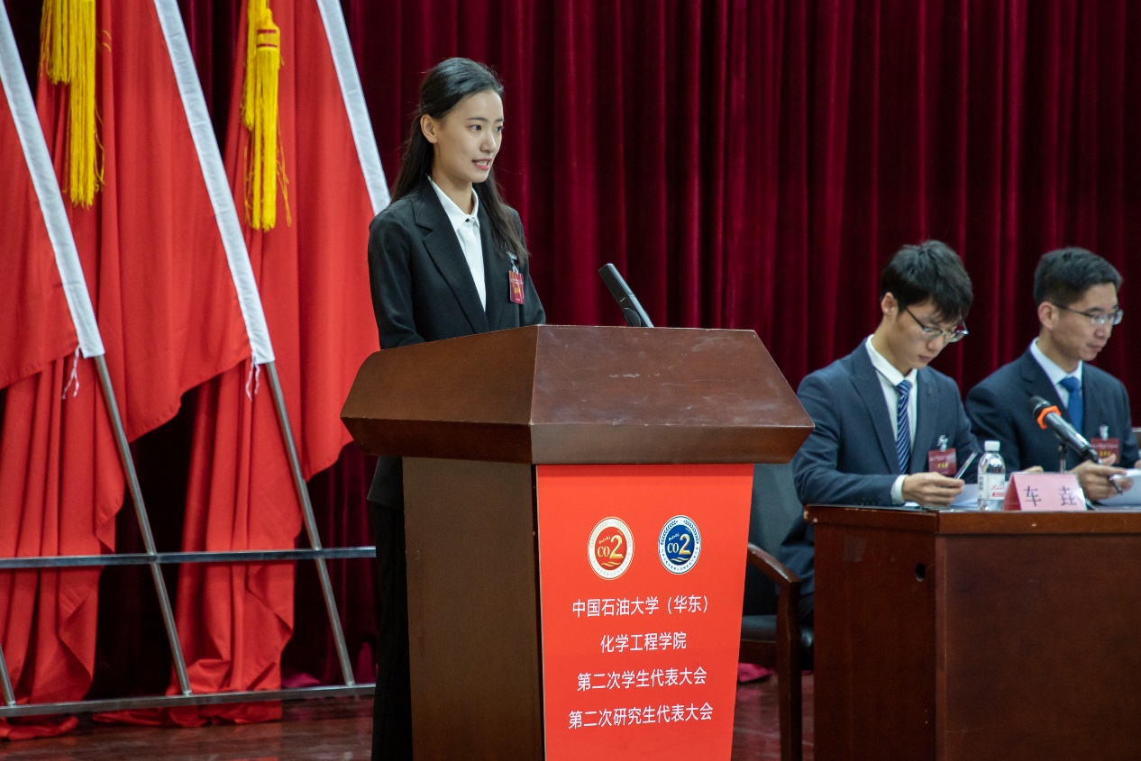 在大会闭幕式暨第三次全体会议上,经过监票人计票人计票之后,总监票人车桐宇和陶文文报告计票结果,并由车桐宇宣布化学工程学院学院第二十四届员工会主席团名单和第九届研究生会主席团名单,刘晓阳、郑雅琦、党雯倩三名本科生和王瑜婷、车垚、徐庆振三名研究生当选。大会听取了关于提案的工作报告,同时审议通过《关于威廉希尔体育(华东)化学工程学院员工会章程修正案的决议(草案)》和通过关于威廉希尔体育(华东)化学工程学院研究生会章程修正案的决议(草案)》。随后,学院员工会和研究生会向学院青年员工发出《青春之歌当唱响,砥砺奋斗当自强,为建设特色创新、协调发展的化学工程学院贡献青春力量》的倡议,号召全体青年员工坚定爱国信念,勇于砥砺奋斗、敢于担当责任,成就时代风帆、富有青春朝气,诠释无私奉献,在实现中国梦的伟大实践中放飞青春梦想,为建设石油学科世界一流贡献青春力量。最后,在激昂的校歌中,化学工程学院第二次员工代表大会、第二次研究生代表大会顺利闭幕。