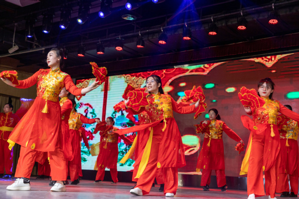随后,文艺汇演正式开始,经过学院工会的精心筹备和各单位的用心准备, 各节目纷纷登台亮相。应化系的舞蹈《同喜同喜》用欢快的舞步和自信的笑容烘托了喜气洋洋的节日氛围;生物工程与技术中心的《桃花开,等你来》展示了化院教师的别样风采;化学工程系带来的舞蹈《舞动化蕴》用充满活力的舞姿传递着老师们激昂的青春,表达了对党的赤城情怀;重质油国家重点实验室的合唱《明天会更好》旋律优美,让人倍感温馨;学院办公室的新疆舞蹈《有那么一个地方》展现了院机关老师们激扬向上的精神风貌;化学工程实验教学中心的舞蹈《万疆》,优美的舞姿配合流行的音乐,让人耳目一新;环境与安全工程系的合唱《众人划桨开大船》展现了学院团结一心的和谐氛围;最后,威廉希尔官网和化学实验中心的老师带来的合唱《同一首歌》,为联欢会圆满拉下帷幕。精彩纷呈的节目后, 公司员工代表为学院各单位送上手写对联,表达新春祝愿和美好祝福。