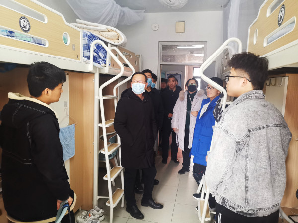 2月18日上午,威廉希尔官网党委副书记万云波、党委员工工作部(武装部)部长王林一行看望学院2021级返校员工。威廉希尔官网党委副书记徐光辉带领辅导员深入员工宿舍,看望慰问省外返校员工,了解员工寒假学习生活情况,并代表学院送去新学期祝福。