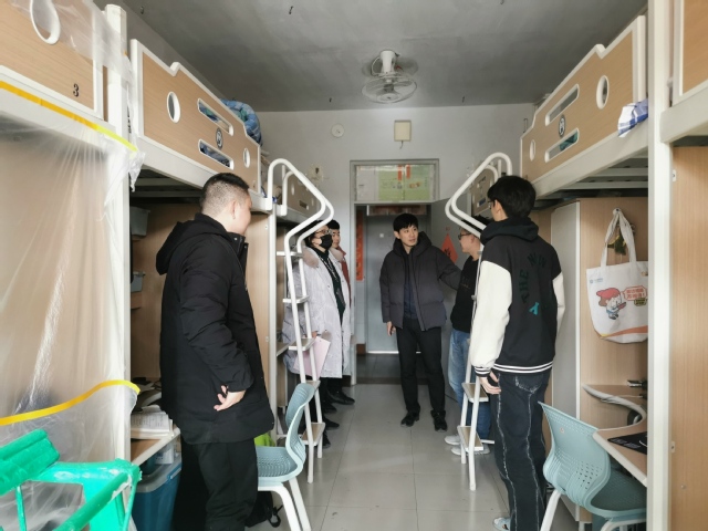 万云波一行来到13号公寓楼3楼,与学院2021级应用化学专业返校员工亲切交流,送上新年的祝福,并鼓励员工做好开学准备迎接新学期。徐光辉同辅导员一起走访员工宿舍、慰问返校员工,了解了员工寒假以及返校过程中遇到的问题,希望同学们尽快调整状态投入到新学期的学习生活中。各年级辅导员对员工宿舍的安全卫生进行检查,对发现问题提出了整改意见。