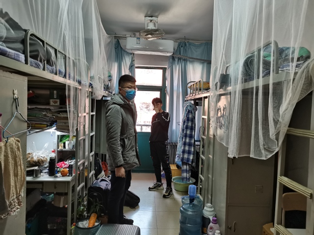 2月19日下午,2018级辅导员刘伟带领年级员工工作组走进宿舍,看望返校员工,了解员工返校情况,提醒员工注意安全卫生,并代表年级送去新学期祝福。