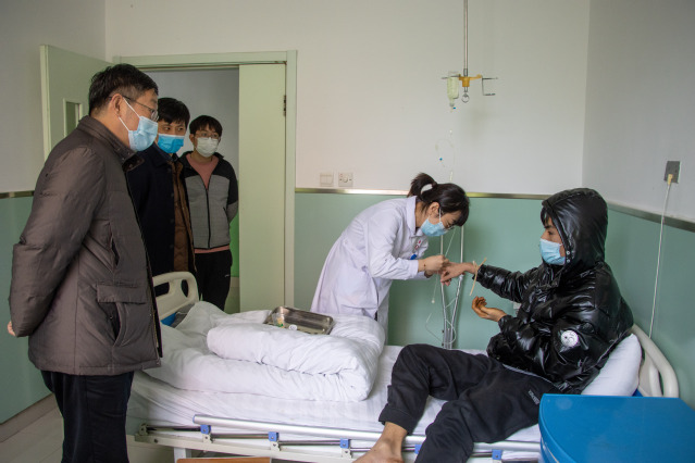 张永宁、徐光辉还前往校医院看望了在核酸检测现场遇到的拄着拐杖的生病员工,张永宁仔细询问了员工的病情,跟医生了解治疗现状,要求副书记、辅导员关注员工情况,同时向员工送上了温暖的祝福。