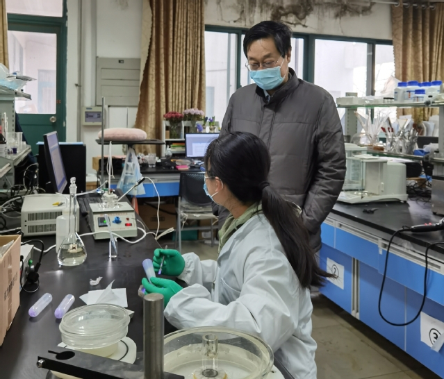 面对疫情防控形势严峻,校外教师无法入校的现实情况,为了保障实验室安全有序运转,学院建立“校内校外结合、四支队伍联动”的实验室安全保障机制,刘欣梅和张永宁每天对实验室进行抽查走访,了解师生实验开展情况,确保安全工作落实到位;刘义、徐光辉等管理干部作为安全责任人,对“分片、包干”的实验室进行严格监管,确保实验室运行安全平稳。在实验室走访检查过程中,领导干部与师生进行交流,询问了实验内容和科研进展,了解了工作中存在的困难,希望员工做好与校外导师的沟通,安全、规范开展实验工作。
