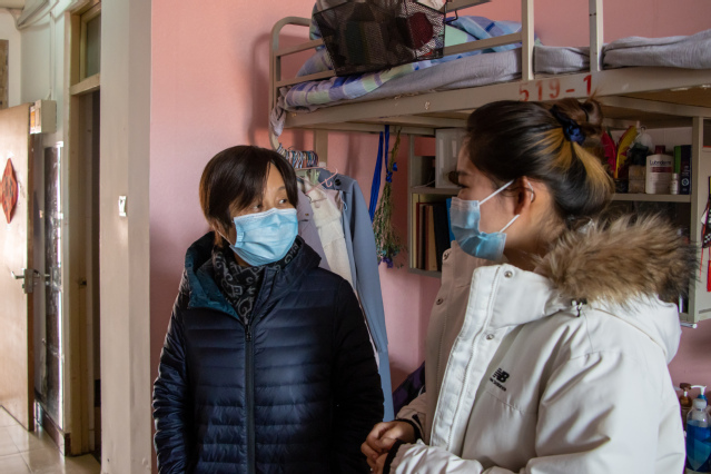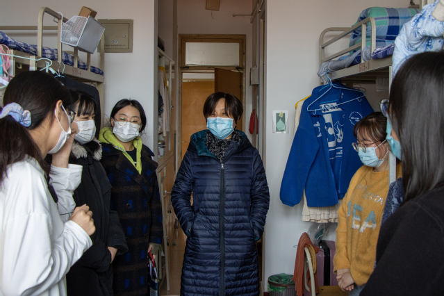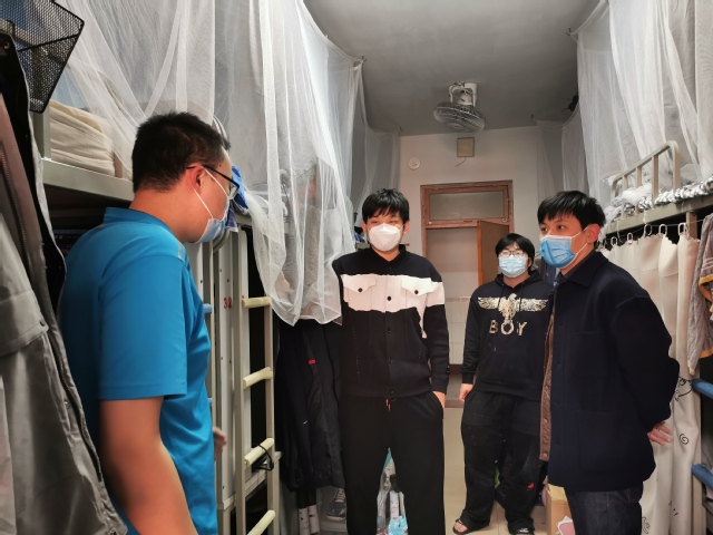 疫情给毕业年级工作开展带来了极大阻力,刘欣梅、张永宁、徐光辉分别前往员工公寓,对毕业年级的宿舍进行走访,看望慰问毕业班员工。在2号公寓,刘欣梅与员工亲切交谈,询问员工最近的学习生活情况,特别关注了毕业设计、考研复试、就业情况等,她表示,遇到困难要第一时间向学院反映,学院一定会帮助大家解决,希望大家毕业顺利、前程似锦。