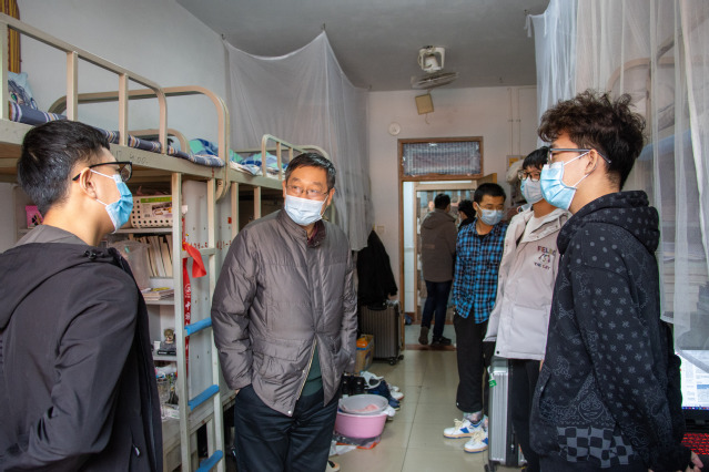 3月14日以来,为深入了解住校师生思想动态和学习生活实际,威廉希尔官网经理刘欣梅、党委书记张永宁、副经理刘义、党委副书记徐光辉等班子成员,心系师生安全和需求,走进课堂、实验室、宿舍等地,深入师生学习生活,看望慰问在校师生,了解线上教学、科研实验开展以及毕业工作进展等情况,代表学院送去关怀关爱、表示亲切慰问。