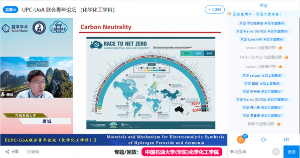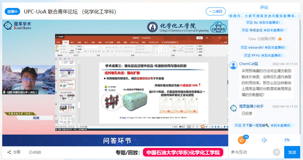 4月10日下午,学院联合联合阿德莱德大学化工学院共同举办了化学化工学科青年学者联合论坛。本次论坛依托学院“云端讲座”平台进行全网直播,累计吸引近5000人在线关注。