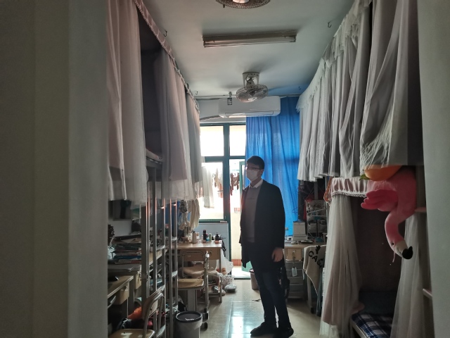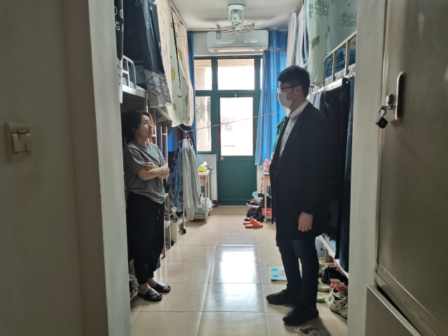 检查过程中发现,大多数宿舍卫生状况良好,但部分宿舍存在室内空气质量差、地面不洁净、地面杂物过多等现象;员工均能遵守宿舍用电准则,未发现使用违规电器等现象。期间,刘伟还询问了员工近期考研复试情况以及未就业员工的就业进展,答疑解惑,帮助同学们更好地做好职业规划。