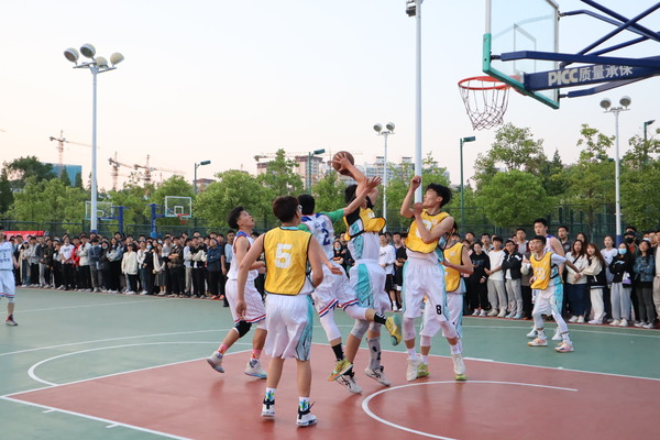 决赛球场四周被热情洋溢的观众围的水泄不通,加油助威声此起彼伏。面对老对手地球科学与技术学院,主力尽显,全员出战,一开始就直接进入到白热化阶段,双方你来我往互不相让,突破、抢断,中投、三分,比分不断交替上升,但上半场遗憾落后五分,紧张的比拼让双方都不敢放松,依靠精湛的球技,坚持不懈,第三节成功追平比分,第四节一波高潮领先对手五分,以62比57的比分一举拿下比赛,卫冕冠军,拿到云帆杯第十六届、第十七届两连胜。