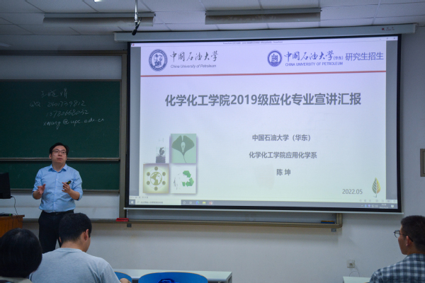 活动伊始,杨修洁从教师简介、历年班级、团队建设等方面详细介绍了学院应化系的具体情况,同时告诉同学们应化系是一个团结、奋进、有爱的大家庭,老师们会以严谨认真的态度对待每一位同学,助力员工成长成才。在接下来的宣讲活动中,多位老师分别对课题组的研究方向、课题特色、实验室情况进行了简单地介绍。王晓娟老师建议同学们要敢于尝试不同方向,不论是出国留学、国内升学、进入职场,大胆地自己的人生进行一个简单地规划。师楠热情邀请同学们加入到重质油化学和石油基新材料大家庭中,在这里同学们可以探索科研、提升能力,同时也可以收获友情。宣讲最后,李鹏、陈坤和冯昭璇针对同学们提出的问题一一进行解答,他鼓励同学们放眼当下,勤学上进,祝愿同学们可以收获一个美满的未来。