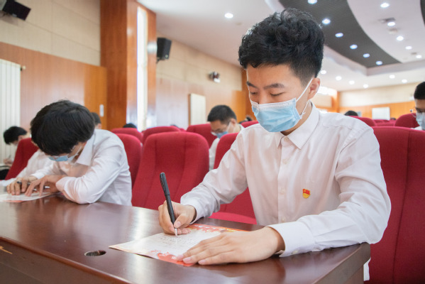 封封决心书,代代化院人。毕业生书写出征决心书是学院六十多年来的优良传统,自1954年以来,每一届毕业生都在决心书上郑重写下对自己、对母校、对党和国家的承诺,一代代化院人接力奋进、踔厉奋发,为祖国建设和能源行业发展贡献了青春力量。在《去西部》《不忘初心》的音乐声中,青年党员提笔静思,在决心书上郑重写下对党和祖国以及母校母院的承诺,嘉宾老师们也为2022届毕业生写下青春寄语。毕业生党员杜洪龙作为代表发言,他分享了自己决心里的青春誓言,希望能够在平凡的岗位上,努力学习,扎实工作,争做行业的先锋者、领头人。
