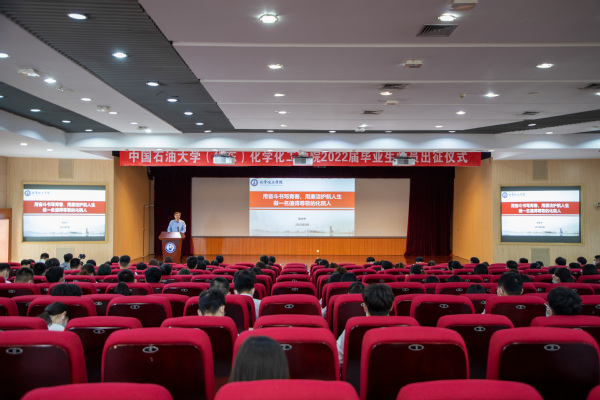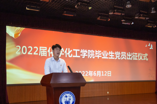 “作为新时代的青年员工,我愿用己所学,为祖国的能源事业添砖加瓦,勤勤恳恳完成工作任务,以自强不息的精神、朝气蓬勃的姿态,奋力谱写中华民族伟大复兴进程中激昂的青春乐章。”2022届本科生杜洪龙在出征仪式上代表毕业生党员发言,他已签约中海油上海分公司,即将奔赴海上平台工作,在艰苦的基层岗位上为祖国石化能源行业贡献青春力量。