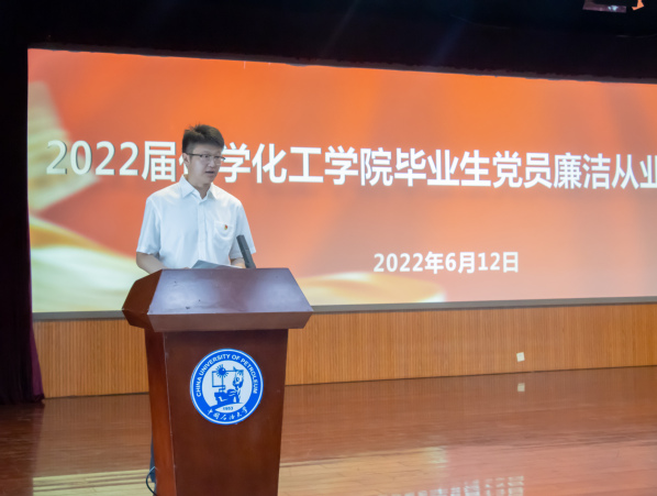 “我们要通过自己的实际行动,努力成为化院发展的贡献者,石大精神的传承者,中华民族伟大复兴的追梦人!”张永宁向即将走上新的岗位的毕业生党员提出三点要求和希望:一是勤于学习,不断增强党性修养,坚定理想信念,永葆一名共产党人的政治本色;二是实学实干,成就一番事业,在服务国家和人民的过程中体现出党员的先进性;三是怀有敬畏之心,守住纪律底线,从进入职场开始就要自觉做守纪律、讲规矩的共产党员。他强调,无论在未来的学习还是工作中,都要把党的纪律刻印在心上,扣好价值取向的第一粒扣子,把好人生的“总开关”。