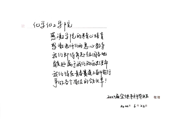 一场旅行的终点就是另一场旅行的起点。刘东教授在仪式最后,也向毕业生表达了温暖祝福,他希望大家以敢想敢做不怕输的勇气,去享受追求梦想的过程,不忘初心,不负此生。他期待大家通过不懈努力,站在离梦想更近的地方,续写化院人“寻梦有志、逐梦有行、圆梦有恒”的动人故事,唱响属于自己的欢乐颂。