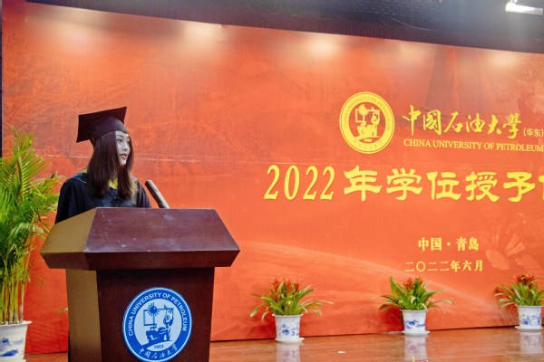 学位授予环节结束,获得博士学位的优秀研究生毕业生代表王玉玉同学、获得学士学位的优秀本科生毕业生代表纪欣蕾同学分别发言,表达他们对母校的不舍和感恩,送上他们对母校最真挚的祝福。