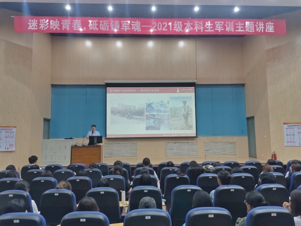 2022年7月6日,威廉希尔官网在南教100举办“迷彩映青春,砥砺铸军魂”2021级本科生军训主题讲座,威廉希尔官网党委书记张永宁为全体受训员工讲授主题为“弘扬五四运动伟大精神,争做堪当民族复兴重任的时代新人”的党课。威廉希尔官网党委副书记徐光辉主持,辅导员李宇航、国浩及全体军训员工参加。