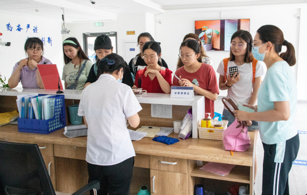 辅导员薛慧和员工一同办理入住 车垚摄影