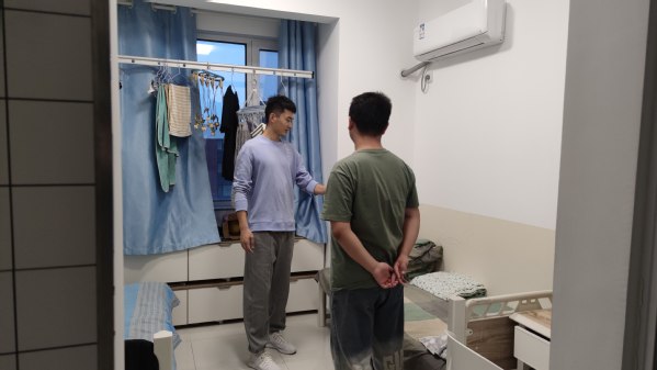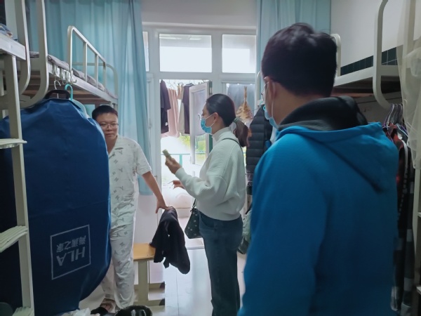 研究生辅导员薛慧、李雨轩检查唐岛湾员工宿舍