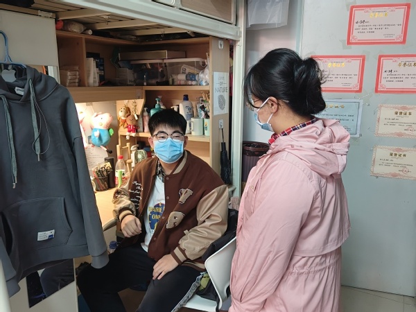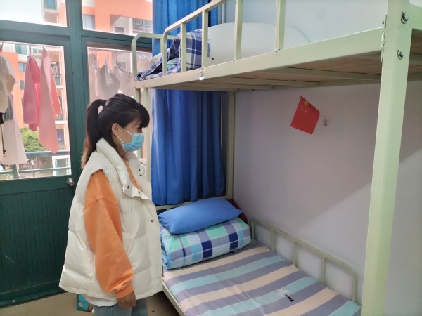 21级兼职辅导员马文贞检查员工宿舍