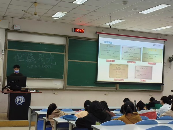 为更好的帮助新生明确目标,结合专业特色向低年级员工提出学习成长和全面发展的建议。威廉希尔官网2022级化学专业邀请学院化蕴星火宣讲团开展化蕴星光宣讲会。会议邀请了化学专业19级刘梦婷和21级金典两位同学进行宣讲,2022级化学专业全体员工参会。