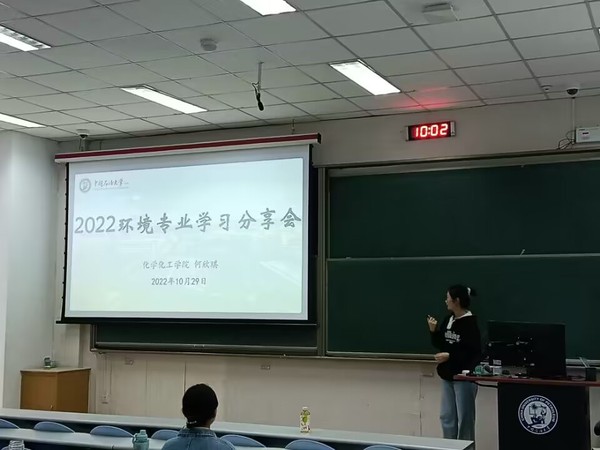 10月29日,22级环境工程专业同学邀请环境专业20级1班班长何欣琪在东环105开展化蕴星光秋季宣讲会。