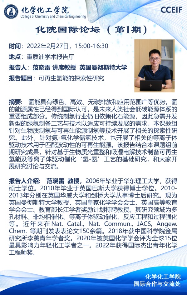 【预告】化院国际论坛(第1期)举办的通知