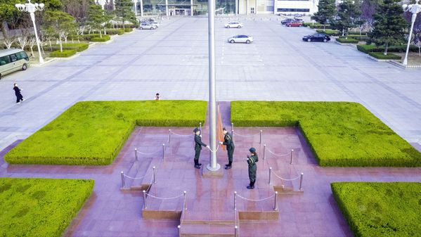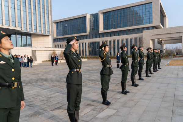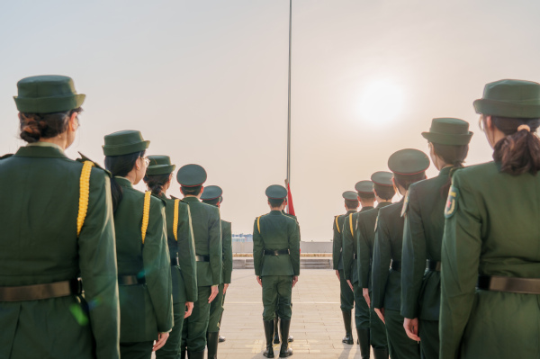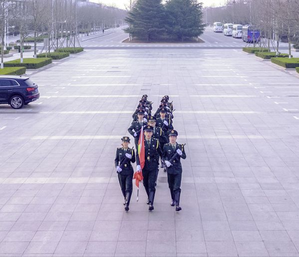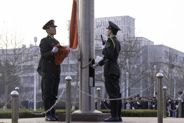 两校区的国旗护卫队身姿挺拔、整齐列队,在唐岛湾校区子元广场和古镇口校区国旗广场集结。随着一声令下,国护队迈着矫健的步伐,护送国旗走向升旗台,在铿锵的国歌声中,五星红旗冉冉升起,全体师生同唱国歌、行注目礼。