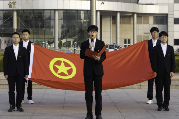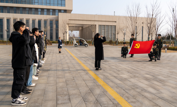 活动最后,唐岛湾校区团员青年面向团旗重温入团誓词,并齐唱团歌;古镇口校区员工党员面向党旗庄严宣誓,立下承诺,愿为共产主义事业奋斗终身。