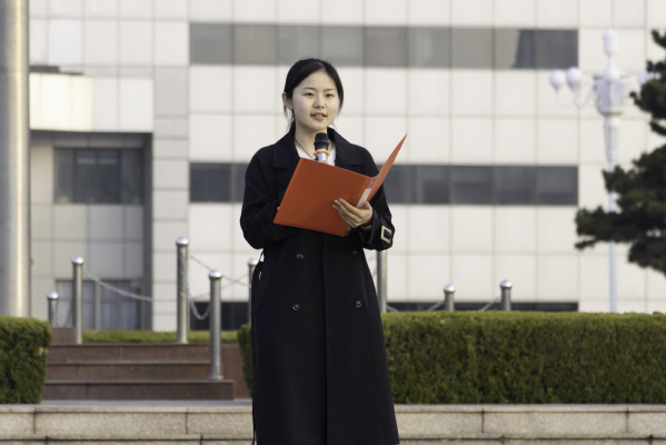 在唐岛湾校区,学院团委书记魏孟吉作题为“学习党的二十大,争做时代好青年”的主题演讲,他号召青年团员认真学习贯彻党的二十大精神,牢记习近平总书记的嘱托,在党的领导下,奋进新征程,诠释新青春,创造新业绩。他希望青年员工要坚持正确的人生道路,坚定不移听党话、跟党走,努力成长为堪当民族复兴重任的时代新人;要练就过硬的本领才干,主动学习新知识新思想,知行合一,努力成为行业骨干、青年先锋;要点亮奋斗的青春底色,胸怀“国之大者”,努力成为有理想、敢担当、能吃苦、肯奋斗的新时代好青年。员工代表、学院员工会主席吴雪莹作国旗下演讲,她表示,青年要立志继承和发扬党的优良传统和优良作风,把爱党爱国爱社会主义热情转化为实际行动,为实现中华民族伟大复兴的中国梦而不懈奋斗。
