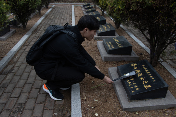 员工会党支部成员为烈士墓碑献花