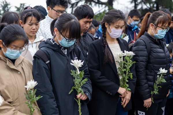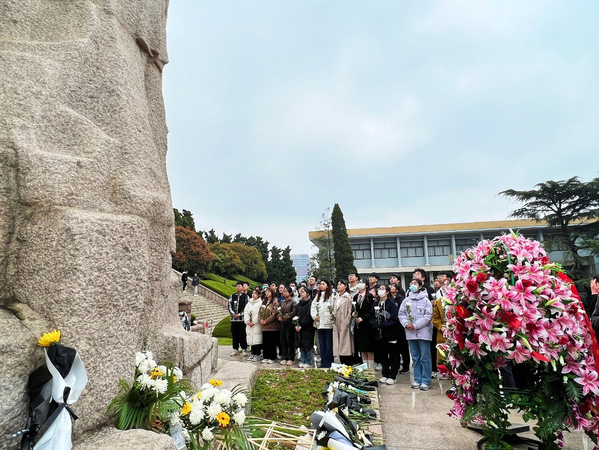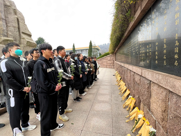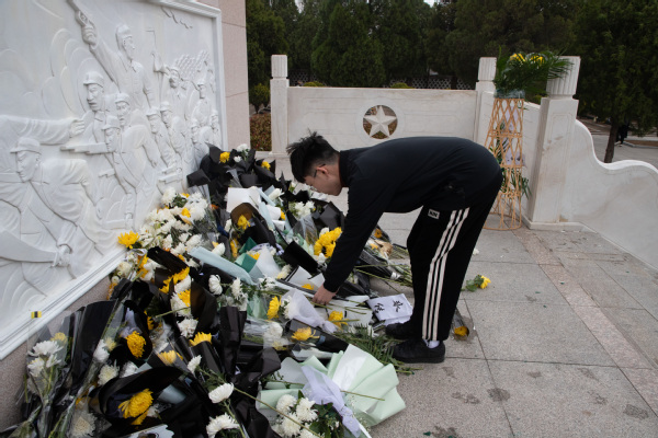 化工2204、化工2205团支部向烈士们献白菊