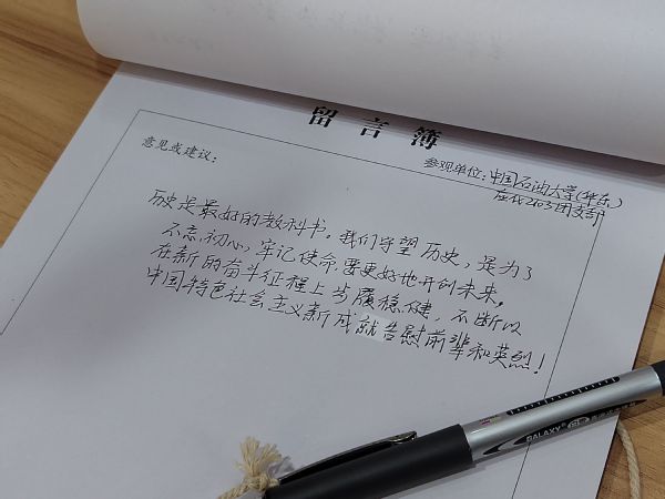 应化2103团支部成员在留言簿上写下感想
