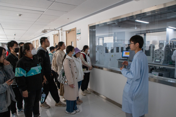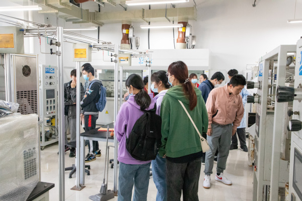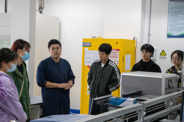 实验室参观活动分四组进行,参观古镇口校区重质油实验室。在国重楼三楼,杨浩为员工们做讲解。他为员工们讲解了实验室中的先进设备和先进技术。他说:“在重质油实验室中,有很多仪器都是国内的首台仪器。”在能源材料化工实验室,介绍电催化技术时,杨浩说:“我国电池技术是当今世界的尖端技术,国重室更是拥有数台世界顶尖仪器设备,这足以体现国家对科研和重质油实验室的重视。”在国重楼五楼,张廷廷带领员工参观了仪器分析室。她为员工讲述了气相色谱仪、液相色谱仪和质谱仪的使用方法,并为员工演示了气相色谱的简单应用;随后,员工来到国重楼四楼参观,王飞为员工们介绍了反应评价室和催化剂表征室中的各类仪器。在介绍表征仪器时,研究员向同学们展示了催化剂的成品,并详细地介绍了催化剂的制备原理、方法和应用。参观活动结束后,员工们在负责人的带领下安静、有序地离开实验室。
