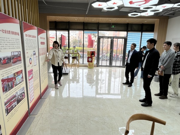 揭牌仪式结束后,管洁带领徐光辉一行参观社区环境与设施,介绍社区发展历史,实地考察探索共建项目模式。