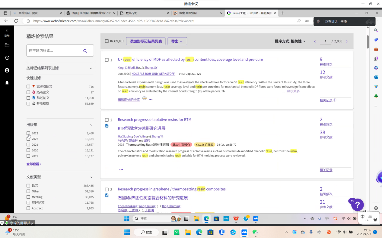 活动中,李琦耐心介绍关于文献检索的各种网站。为更方便快捷且全面地查找文献,李琦分别向成员们介绍了中文文献检索以及英文文献检索。李琦表示,检索中文文献时一般运用到中国知网网站,并向成员们详细介绍了此网站。同时,为了使成员们能更好的理解与应用,李琦在网站中对文献的关键词、高级检索等内容进行示范。其次,为了更快捷,更方便地检索文件,李琦教成员们应用easyScholar插件分辨论文的所在期刊与分区。之后,李琦接着讲解英文文献检索。示范了如何使用Web of Science网站,李琦根据论文的时间、作者、出版物类型、语言等内容进行检索,以便成员们找到他们需要的论文与信息。