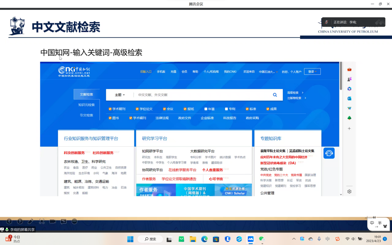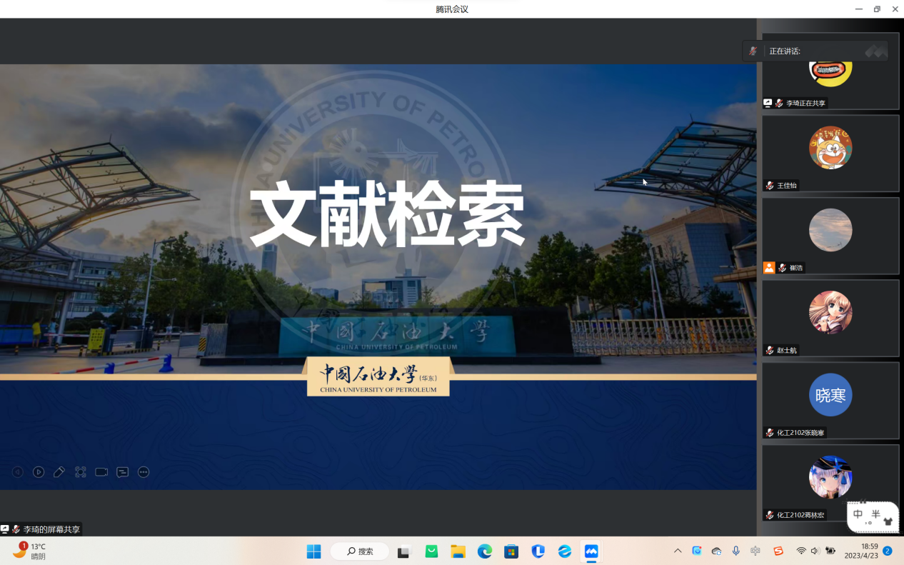 为了推动班级学风建设,让班级同学掌握更多论文相关技巧,化工2102班于4月23日晚在线上开展了“朋辈导师博士小课堂”活动,此次活动由学习委员崔浩主持,化工2102班全体成员参加。同时邀请了创新朋辈导师、博士生李琦讲授分享如何进行文献检索等相关问题。