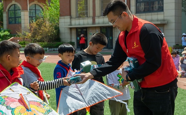 活动初期,负责人与校方进行联系沟通,了解校园基本情况,并确定“风车映华彩,童心绘彩鸢”的活动主题。成员们进入校园后,与员工们进行赛跑、猜拳等破冰小游戏,一同折叠拼装风车,用风车装点校园。小朋友们积极参与其中,气氛高涨。随后应化2103团支部书记普孟琳向小朋友们讲述活动计划以及具体过程,引导小朋友们在后续彩绘纸鸢活动中打开想象力、激发动手能力与协作能力。活动伊始,孩子们在家长和青年团员的指导下,一同用画笔、水粉颜料等在空白纸鸢上尽情创作,发挥自己的想象力,绘制出属于自己独一无二的纸鸢。绘制完成后,孩子们在支部青年和家长陪伴下带上纸鸢,一起奔赴学校操场,放飞纸鸢,翱翔苍穹,感受户外春日光景。孩子们把风筝高高抛起,在操场里快乐奔跑。放线、平衡、调整、控制,成功放飞……纸鸢带着他们的梦想高高飞起。活动结束后,社区党委书记与学校董事长为每一位员工赠送礼物与奖品,最后大家一同进行合影留念。化安2202团支部书记黄金库在活动结束后表示:“通过本次校园公益活动,小朋友们领略到了手工创作的魅力,并提升了创造力,观察力,想象力......支部成员也在这个过程中获得了参与感与成就感,有利于团支部凝聚力的提升,也让我们意识到了‘青年力量如天之初日,必将有夫偌大之世界,任重道远’。”