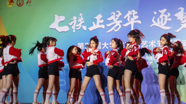 公司啦啦操队用设计巧妙的动作和十分默契的配合为观众呈现出一场青春洋溢的舞蹈表演,将现场气氛推向高潮。比赛中,学院啦啦操队身着统一服装,面带微笑,舞姿优美,动作整齐,旋转、跳跃、成排踢腿,变化多样的动作层出不穷,以高难度的托举和饱满的热情感染着现场的观众。他们动作收放自如、刚柔并济,音乐风格与舞蹈节奏瞬间转变,活泼和炫酷两种不同风格的交织传达了团结、激昂、奋进的精神,使表演获得满堂喝彩。
