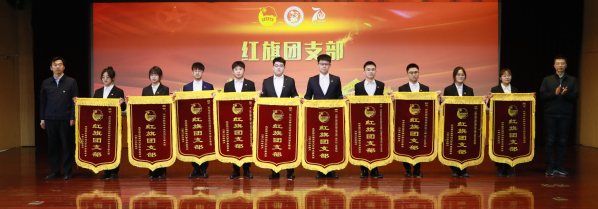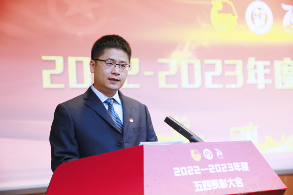 党委副书记马国顺为获评“五四红旗团委”的学院颁奖