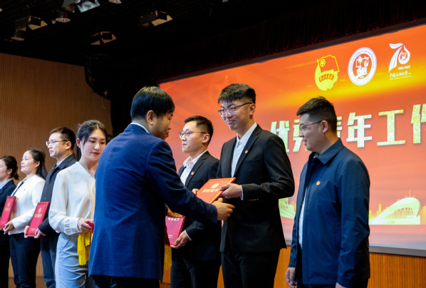 人事处处长牛庆玮为优秀青年工作者获得者颁奖