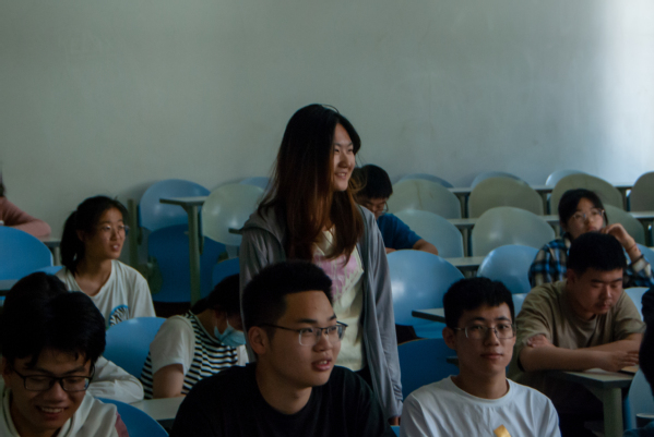刘会娥老师先从梦想入手,与同学们交流梦想中的老员工活;再拉回现实,告诫同学们以学习为重,习惯“宿舍-食堂-教室(实验室)”的三点一线式老员工活。然后,刘会娥老师抛出问题:“化工与化学的区别在哪里?”同学们积极互动,老师从历史沿革、学科平台、教学资源等方面对化学化工专业展开了全方面、多角度的介绍。最后,刘会娥老师列出往年升学及就业数据,毕业生们读研比例高、就业渠道宽、就业范围广。