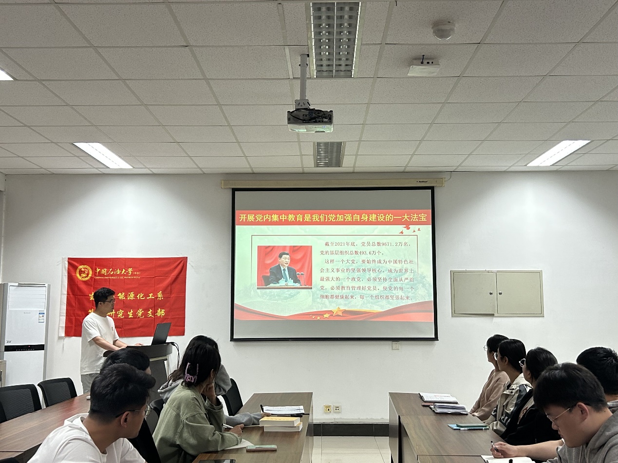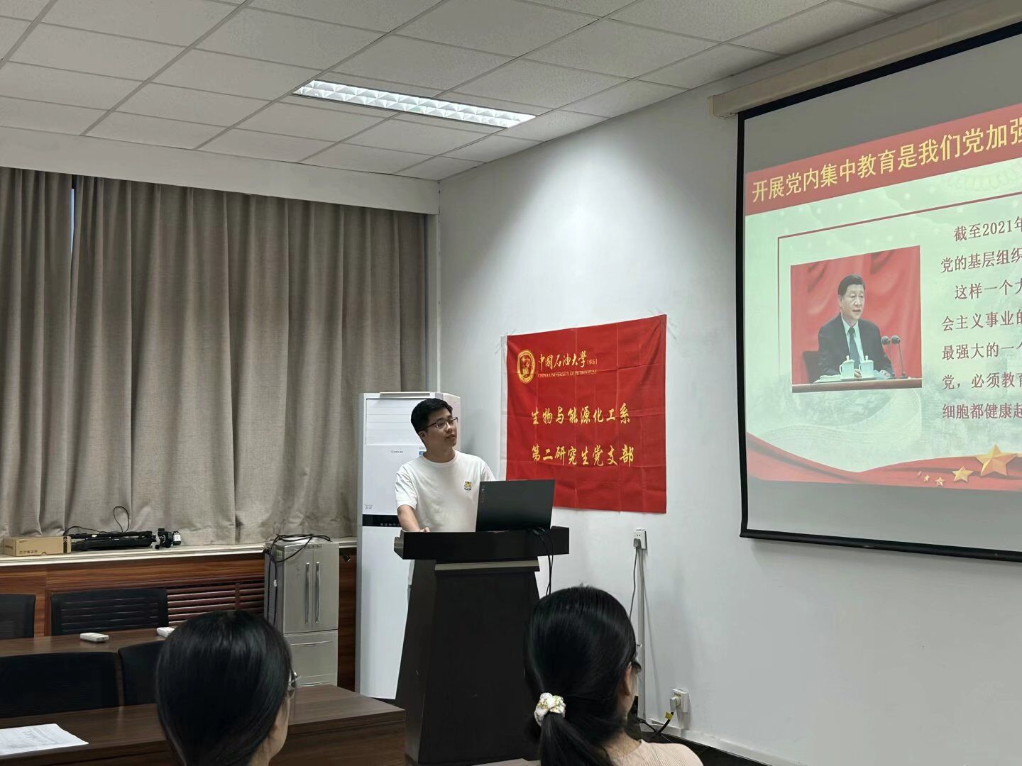 为深入开展学习贯彻习近平新时代中国特色社会主义思想主题教育,强化党的创新理论武装,发挥党员同志的示范带动作用,2023年5月21日晚19点,生物与能源化工系研究生第二员工党支部于逸夫楼340召开学习贯彻习近平新时代中国特色社会主义思想主题教育,通过集中学习,切实提高理论素养、增强能力本领。本次主题教育由支部书记虎祥同志主持。