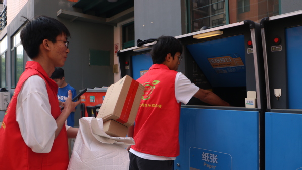 活动伊始,化工2206志愿服务委员王刘凯为所有参与成员介绍习近平总书记对青年提出的16字箴言并着重讲解“求真、力行”的含义,最后布置了本次活动的任务,他说:“活动设置的垃圾分类板块将书本上的知识真正融入到实际生活中,是“求真”的具体表现;而健步走板块将让我们明白一件事的完成要从完成这一件事的每一件小事做起,将“力行”落于实处。”随后,绿油环保协会负责人为大家简单讲解垃圾分类的知识以及环保技巧,介绍了垃圾分类的分类标准和注意事项,让参与者对垃圾分类有了更深入的了解和认识。活动开始,各支部成员在王刘凯的带领下,注册智能垃圾桶的账号,将快递站附近的纸箱、泡沫、塑料袋等收集整理,有序地对其进行分类投放。投放结束并将现场清理干净后,所有参与成员移步田径场,以宿舍为单位设计环保接力健步走轨迹图案,妙趣横生的“其他垃圾”、“购物袋”、生动形象的“淄博烧烤”……参与成员对本环节表现出了极大的热情。几位成员合力完成一个图案的绘制,展现了团队合作的奋斗精神。活动最后,参与成员回到教室,志愿服务委员王刘凯进行活动总结。