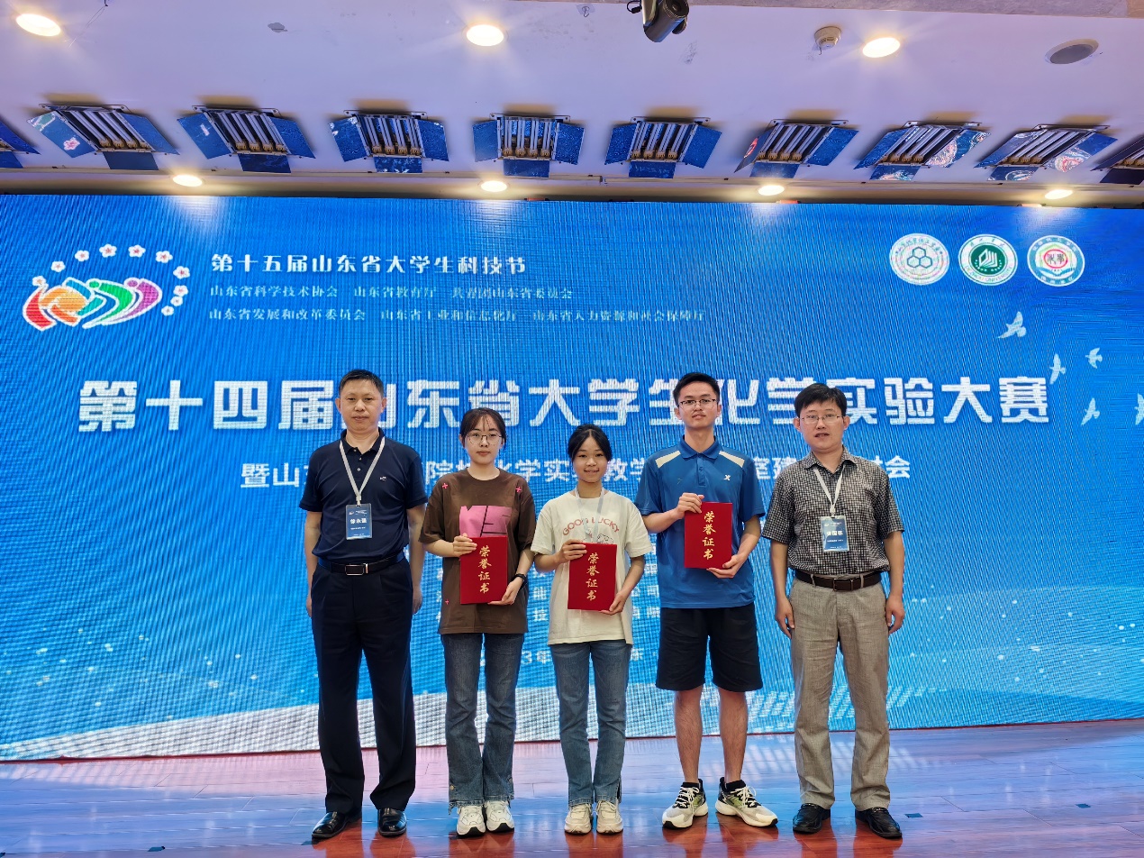 2023年07月12-15日,第十四届山东省老员工化学实验大赛暨山东省高等院校化学实验教学与实验室建设研讨会在德州学院举行,威廉希尔体育(华东)派出20级化学专业3名本科生参加本次比赛,取得了2个一等奖、1个二等奖的优异成绩,其中谷超越、魏莉获得一等奖,李锋获得二等奖。
