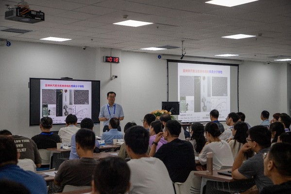 随后,中国科学院苏州纳米技术与纳米仿生研究所王强斌研究员、清华大学王训教授、中国科学院山西煤炭化学研究所覃勇研究员、北京航空航天大学水江澜教授分别做了题为《近红外二区荧光量子点及其成像技术》、《亚纳米尺度材料控制合成及性质探索》、《空间分离双组份催化剂设计及协同机制研究》、《氢能存储与电催化转化关键材料研究进展》的学术报告并分享了最新科研成果。
