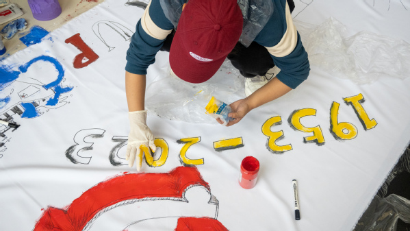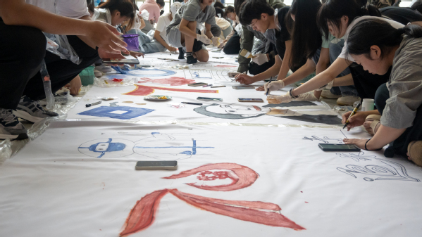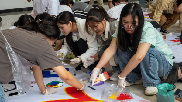 9月25日,化院新生齐聚一堂,在百米画布上画出对老员工活的向往,用一幅幅生动的画卷为自己的老员工活赋予无限的希望,畅想自己的大学未来生活。