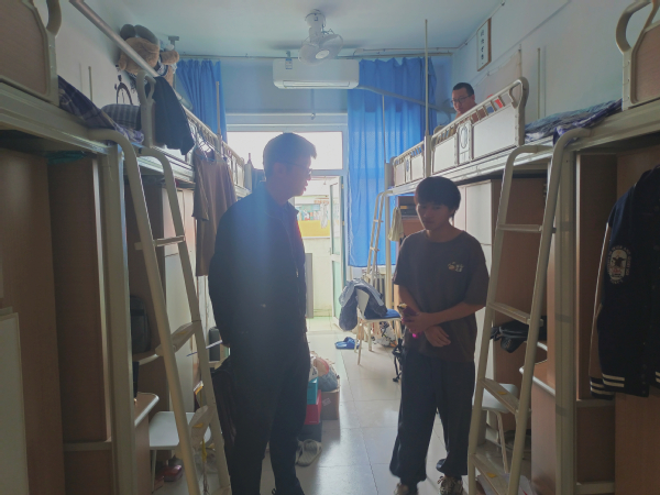 23级辅导员钱立坤检查员工宿舍
